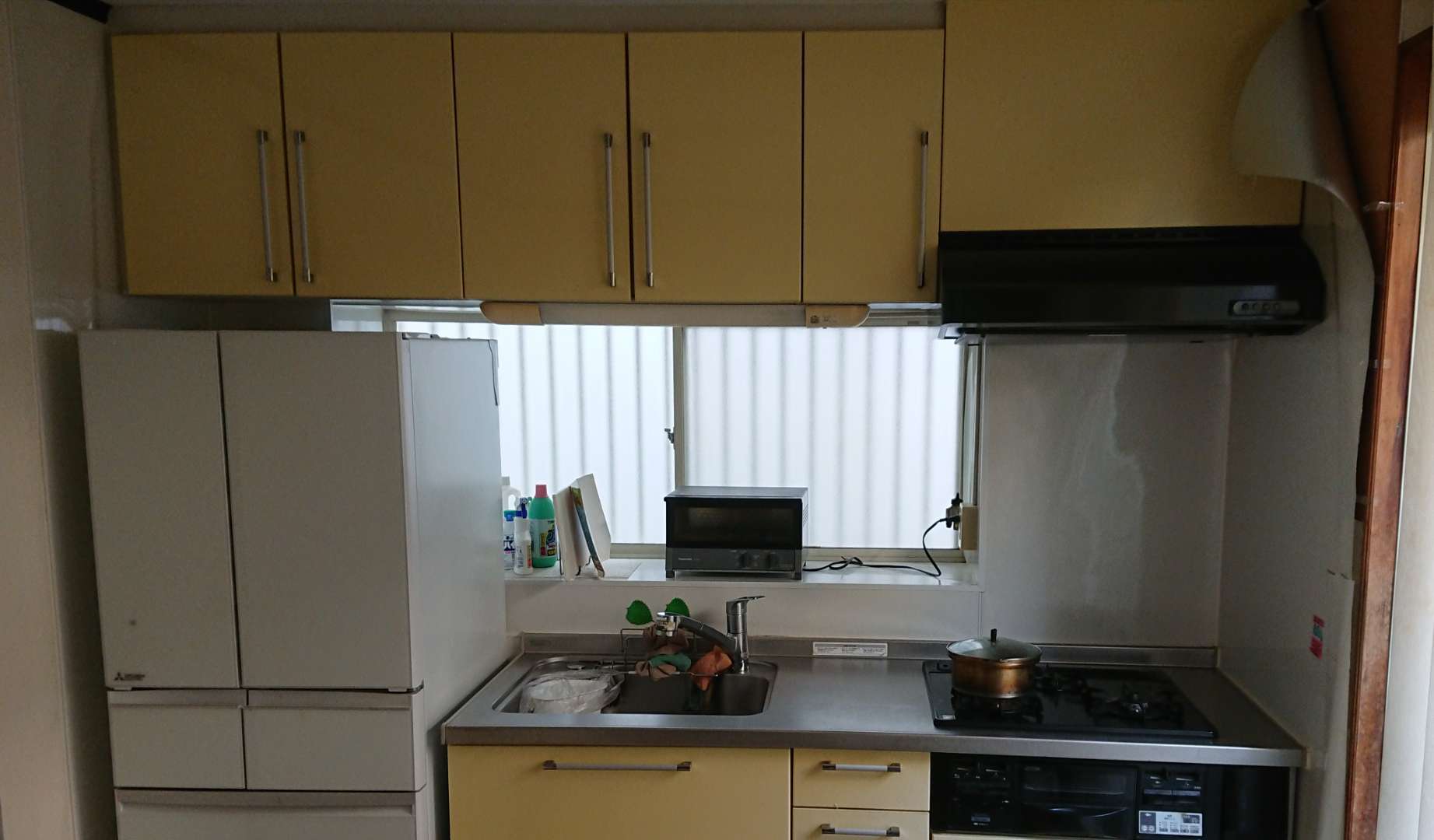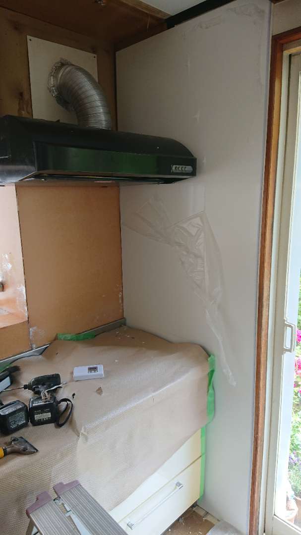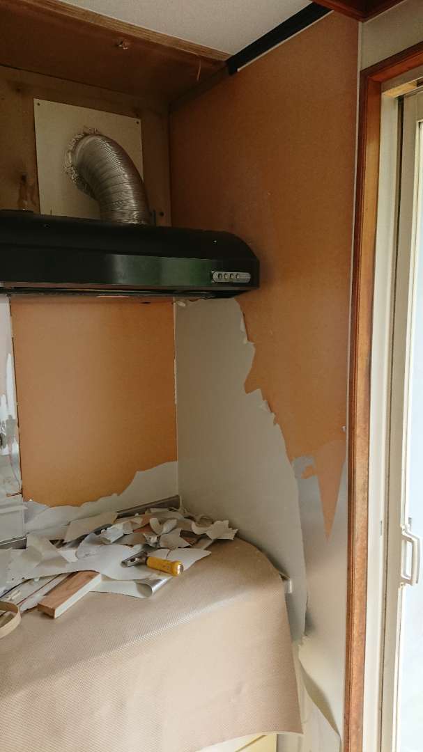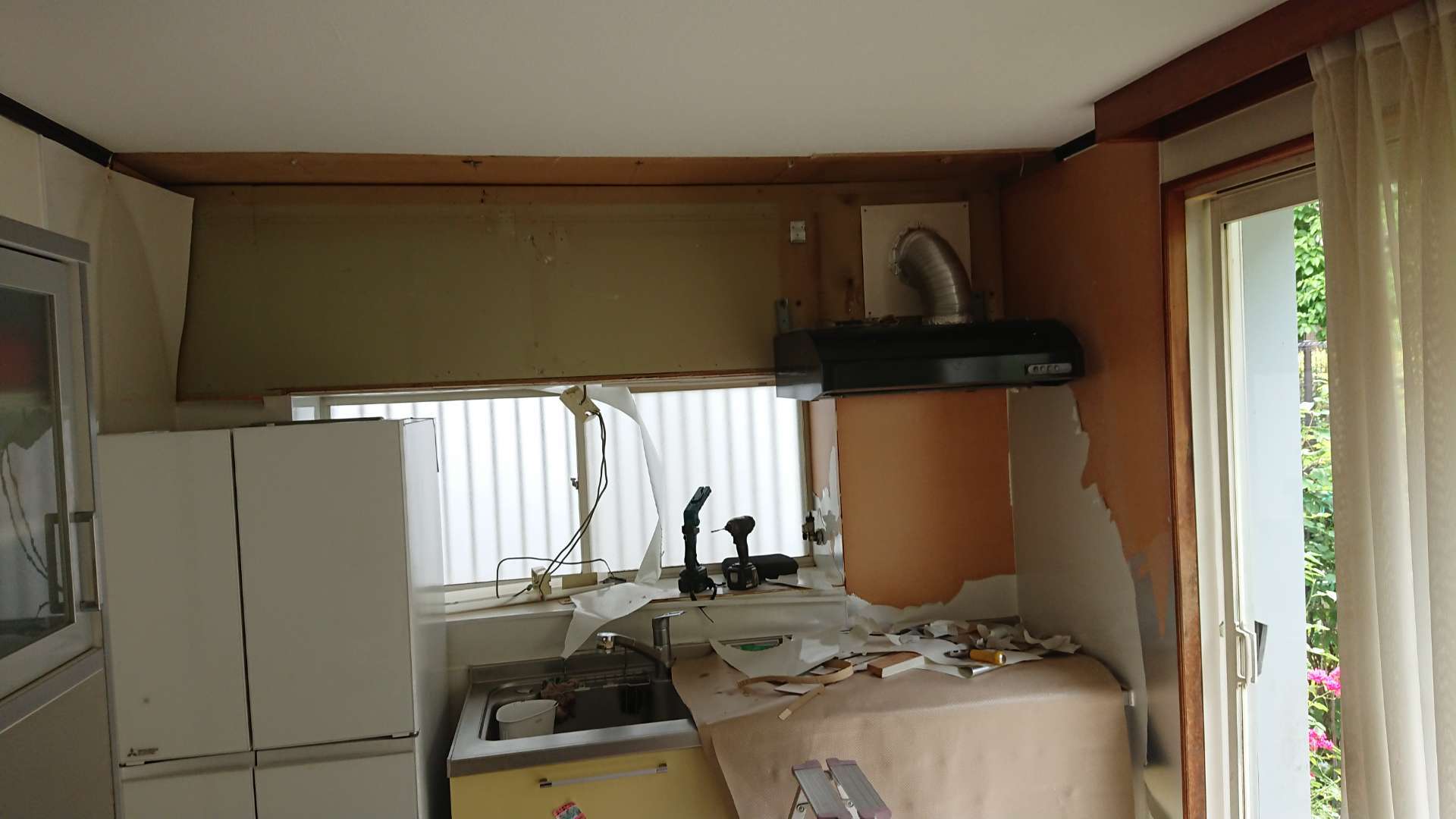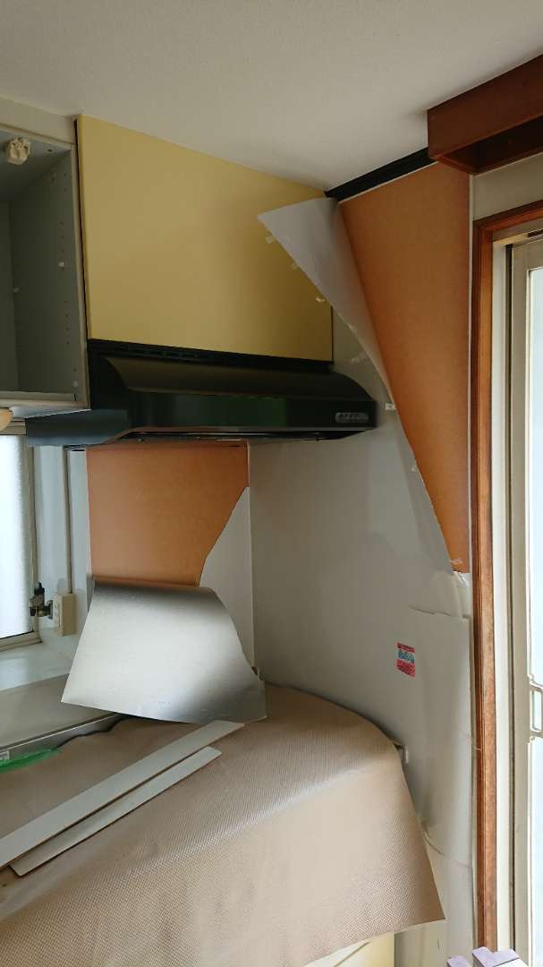 吊戸棚や、レンジフードを外し