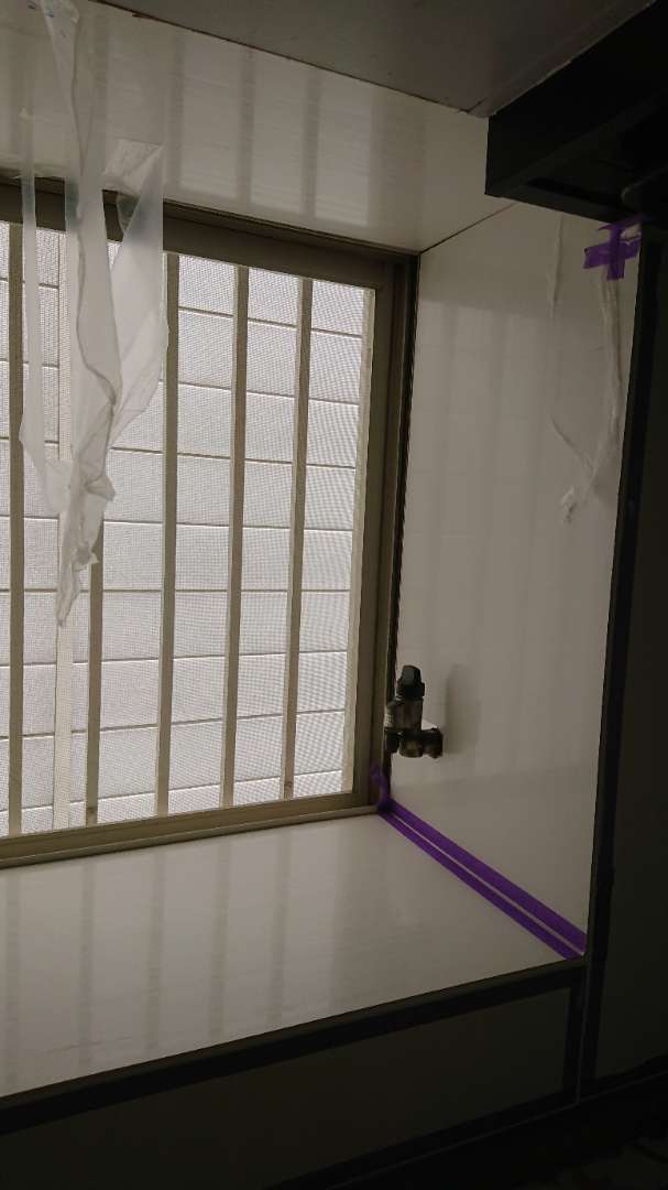 貼り終わったら継ぎ目や、目地のコーキング作業です。