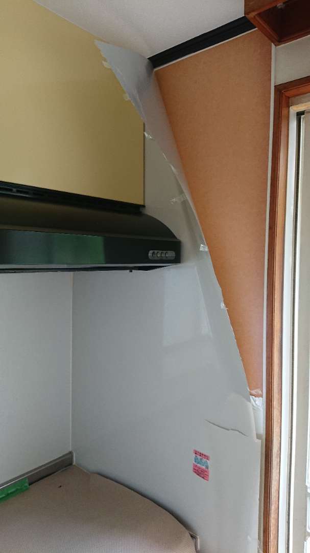 キッチンパネル表面のフィルムが、側面、出窓部分と、パネル部分、全体が剥がれていたり浮いたりしている状態でした。