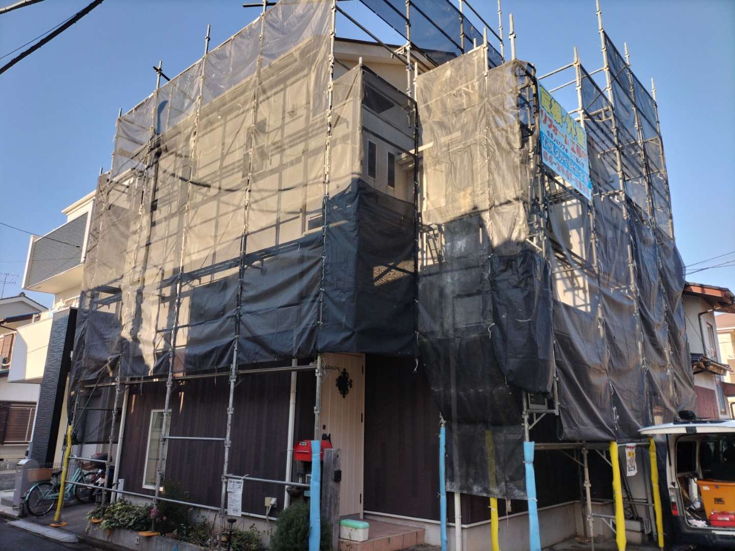 その他、足場、高圧洗浄、養生など塗装工事に伴う工事。