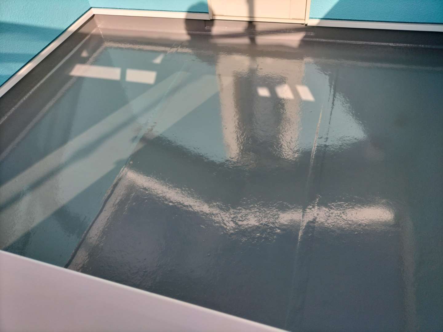 バルコニー防水は、2液型防水トップコート塗装。